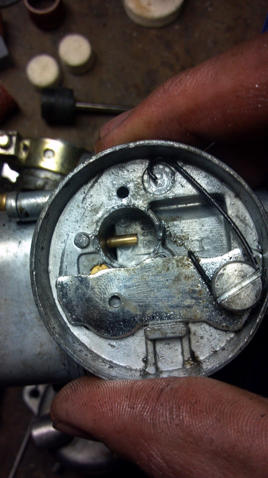 Hey folks, it’s been a while since I posted last, I’m new at this and occasionally forget that I started this thing. And the holidays were alot going on. But I did get a milwaukee angle grinder, and a propane torch! I love getting tools as gifts so that was cool. Anyways, big news is that I split cases, drilled intake, and drilled my carburetor to match. bad news is that my phone died in the garage and didn’t get a pic of the beautiful dremel work that I did on the intake. Oh well, I still have pictures of everything else. Believe it or not, this is the stock intake on the kinetic engine. Pretty big compared to the stock vespa I would say, but it could go bigger. I drilled 18mm in with a 1/2 inch drill bit, as per the wiki on MA, then smoothed out and widened the intake to about 2mm to the edge of the window. The cool part about the kinetic cases (maybe vespa too, I’m not sure) is that there is alot of material around the spigot mount part of the intake and the wall of the case, which meant alot of ramping from the spigot into the windows, so everything is as smooth as can be. I also got rid of the square corners to reduce eddy currents and to make the fuel move as fast as possible through the window. I did not cut my crank as of yet, but that will be the next step in the process. On to the carb: