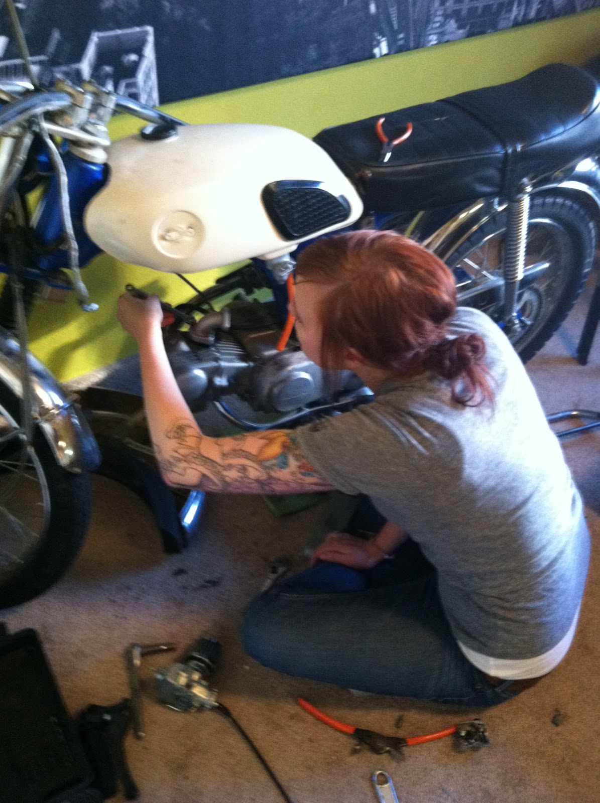 Well thats about it for tonight, I decided that I will try and end every blog post from now on with a random photo from my library that I really like, so here it is, my beautiful lady and fellow casseroller putting a new intake and carb on her cl70. This was a while ago, before she put the 125 on it. Enjoy:
