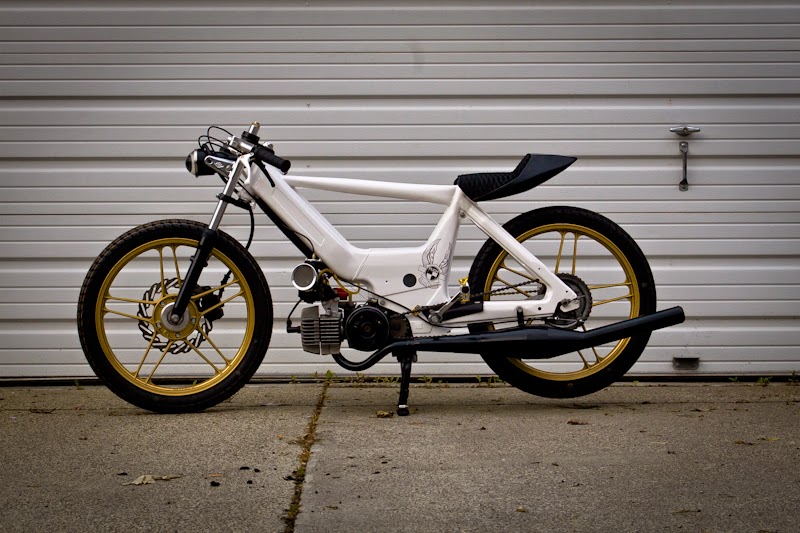I started tearing down the moped and figuring out what to do. I did not want to rush the build, I wanted to do it right this time. I also didn’t want to build it for me. I wanted to build it for my wife. I got the new N in winter of 09-10 and started the slow build. During this time of collecting parts I build many other mopeds. Learning new things and making new choices about what to do.